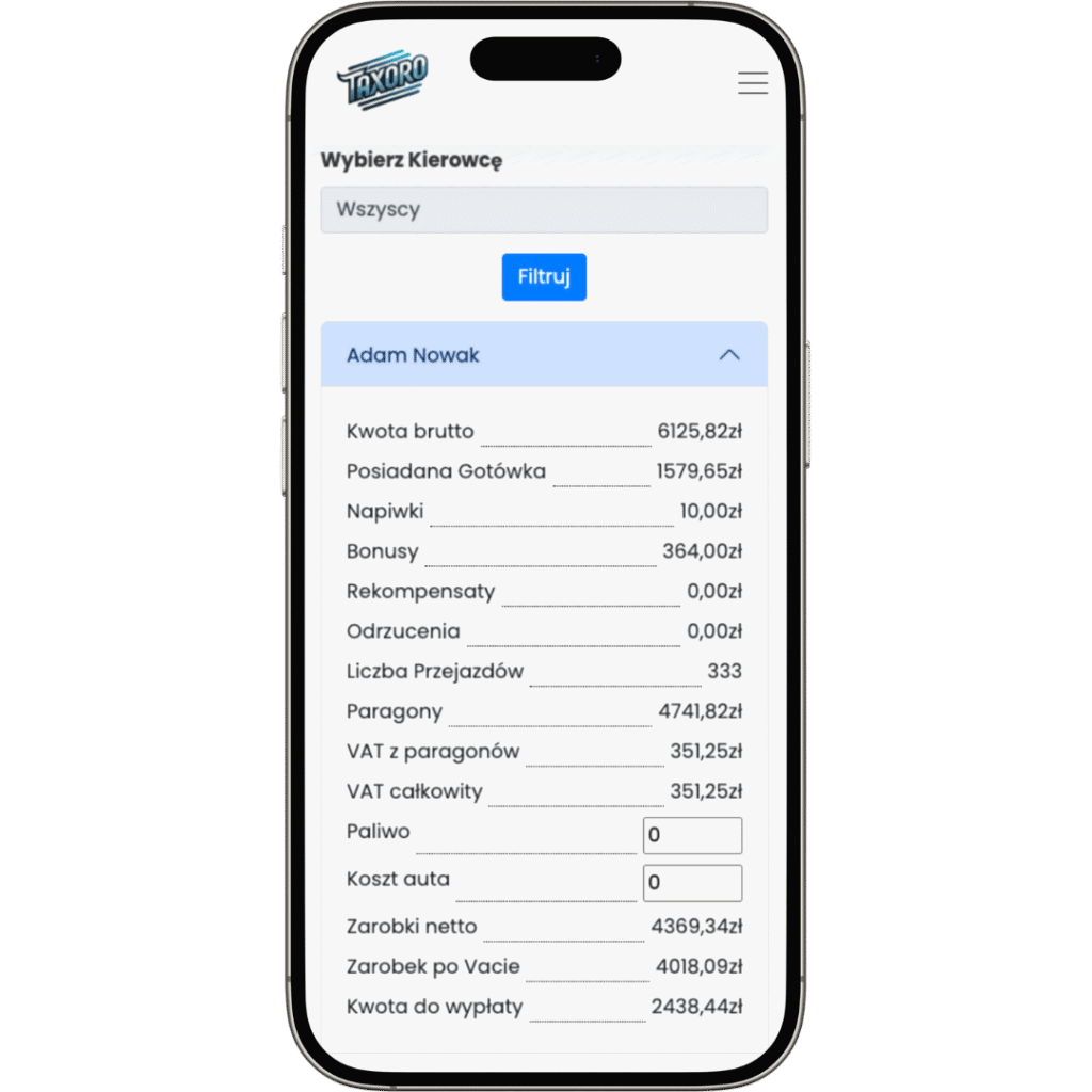 W Taxoro dostajesz nie tylko nowoczesne samochody i elastyczne warunki pracy, ale także własną aplikację mobilną, dzięki której na bieżąco kontrolujesz swoje zarobki i statystyki.